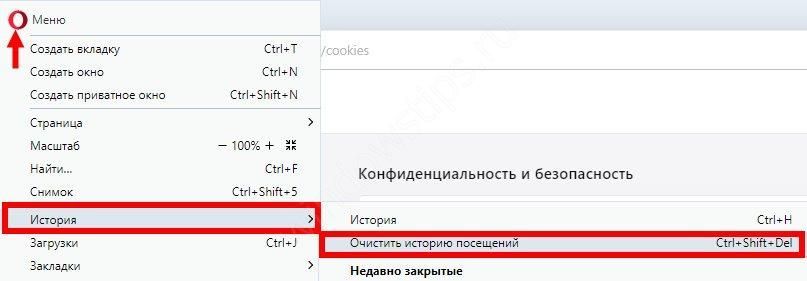 - войдите в Меню, а там История или используйте горячую комбинацию CTRL+Shift+Del;