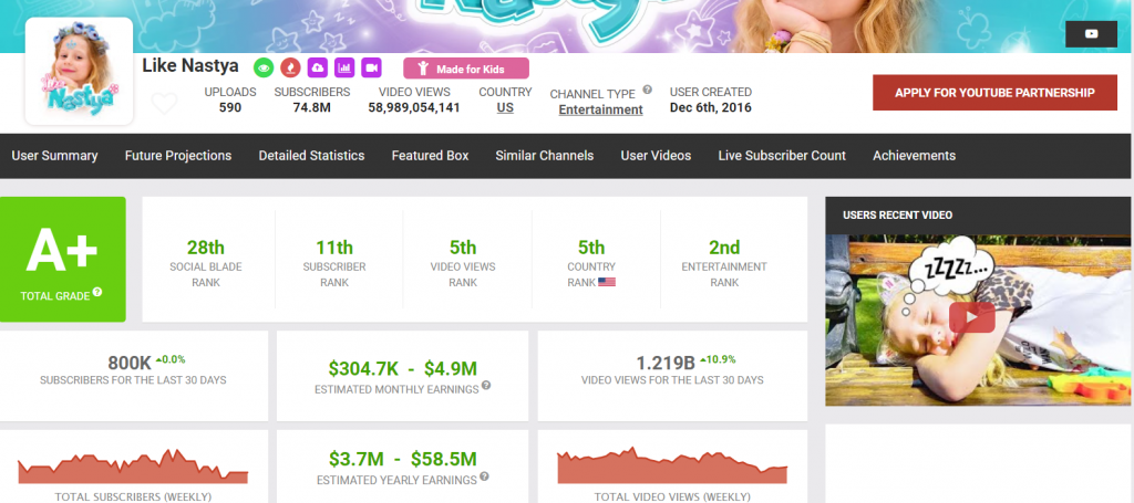 Чтобы понять, сколько зарабатывают владельцы каналов на YouTube в 2022 году, давайте перейдем к Social Blade и возьмем несколько случайных каналов из ТОП-100.