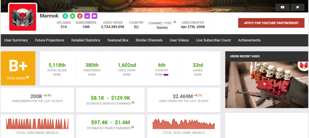 Минимальный годовой доход владельца канала для игроков Marmok составляет 97 000 долларов США![]()