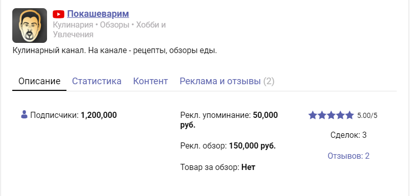 Владелица детского канала Лайк Настя зарабатывает еще больше. А чтобы узнать, сколько сейчас можно заработать на рекламе на YouTube, давайте взглянем на цены на бирже блоггеров Epicstars. Владельцы более миллиона каналов просят в среднем за рекламное упоминание 20 тысяч рублей. Полный обзор рекламы будет стоить 60-100 тысяч. Если тематика канала ТОПовая: фитнес, кулинария, технологии и т.д., цена может быть намного выше.