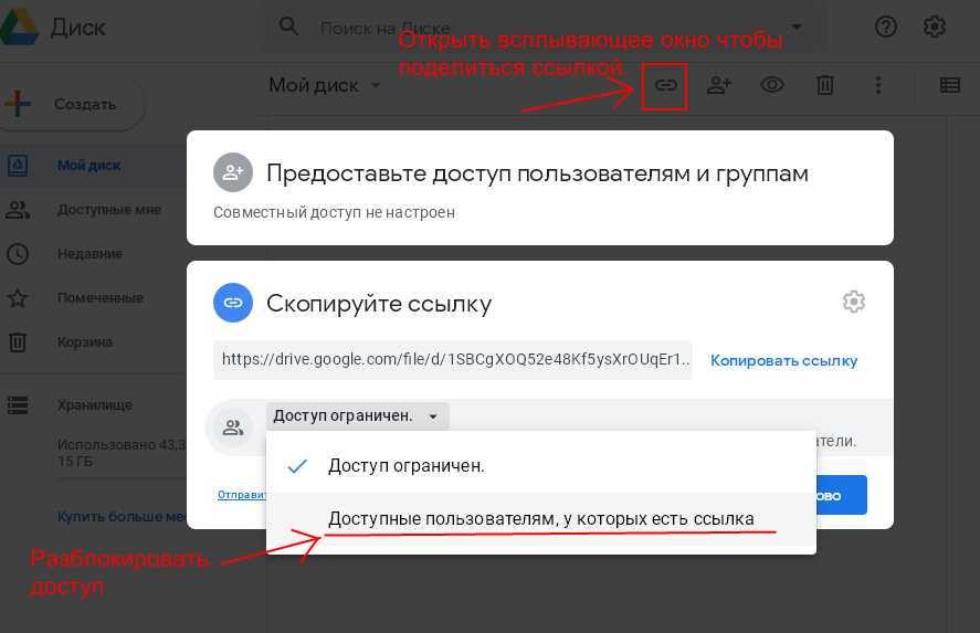 - Начать с настройки доступа и отправить ссылку на папку тем, кому захотите;