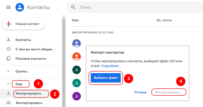 Как Импортировать контакты из файла формата CSV