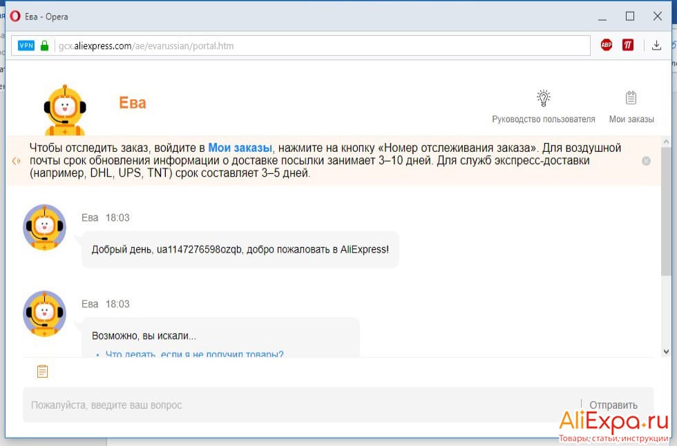 Обратите внимание, что чат открывается во всплывающем окне, и, если в Вашем браузере предусмотрена функция блокировки всплывающих окон, то чат не откроется. Стоит также отметить, что придется изрядно потрудиться, чтобы доказать администрации торговой платформы AliExpress, что это Ваш аккаунт