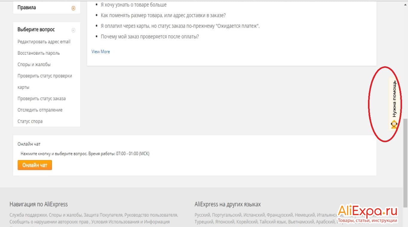 Также, чтобы связаться со службой поддержки, можно на этой странице нажать справа «Нужна помощь».