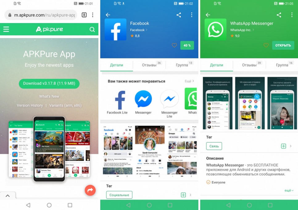 С этой целью можно обратиться к агрегатору программ APKPure или сайтам, на которых отдельно размещаются APK-файлы. Теперь, чтобы восстановить приложение на Андроид, понадобится запустить файл и подтвердить инсталляцию.