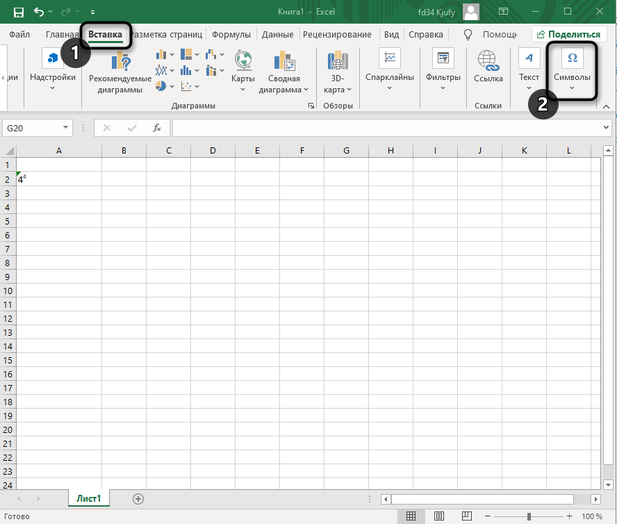 Вкратце разберем другой способ добавления желаемого символа без ручного изменения формата ячеек и перехода в меню редактирования. Для этого используйте специальную вставку.