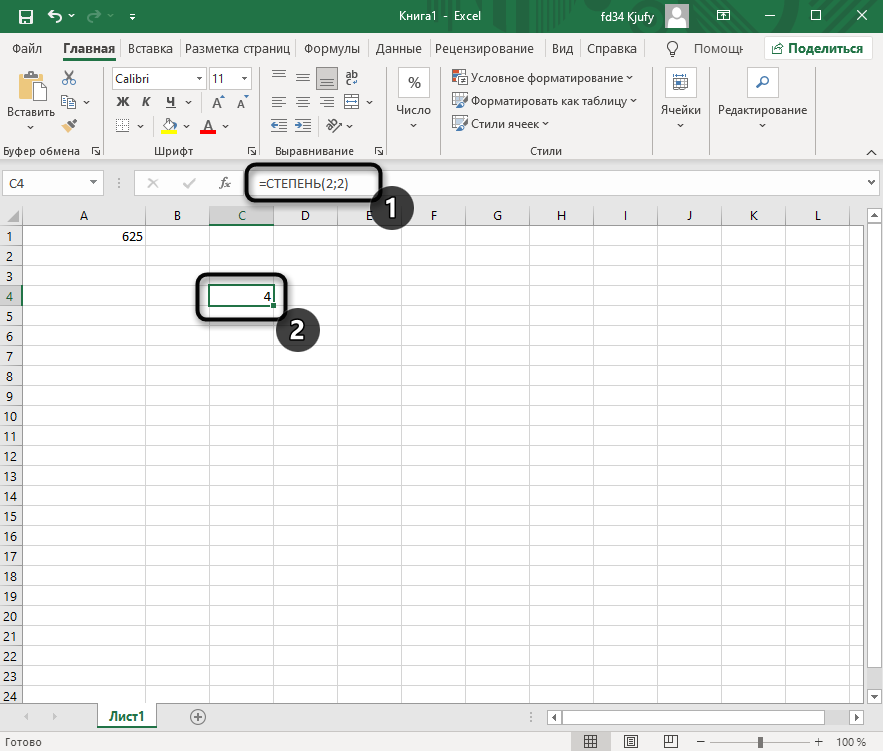 Одна из стандартных функций Excel позволяет вычислить степень числа, предварительно используя все входные данные. Использование данной формулы актуально в тех случаях, когда приведенный выше метод записи не подходит или само действие уже является частью обширной формулы. Вы можете использовать ручную запись или графическое окно добавления функции, которое мы и рассмотрим в качестве примера.