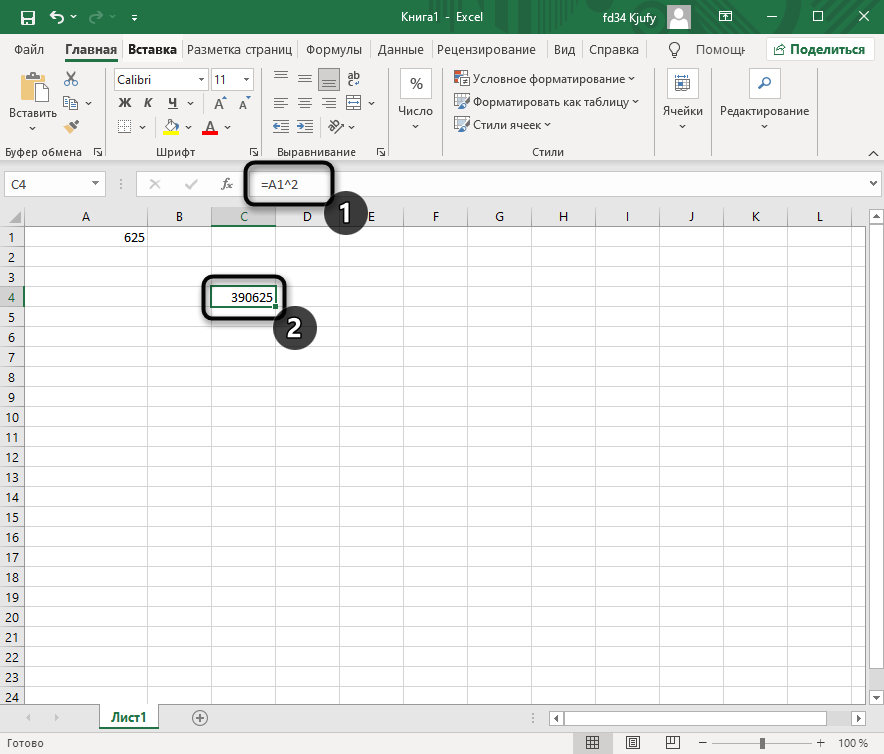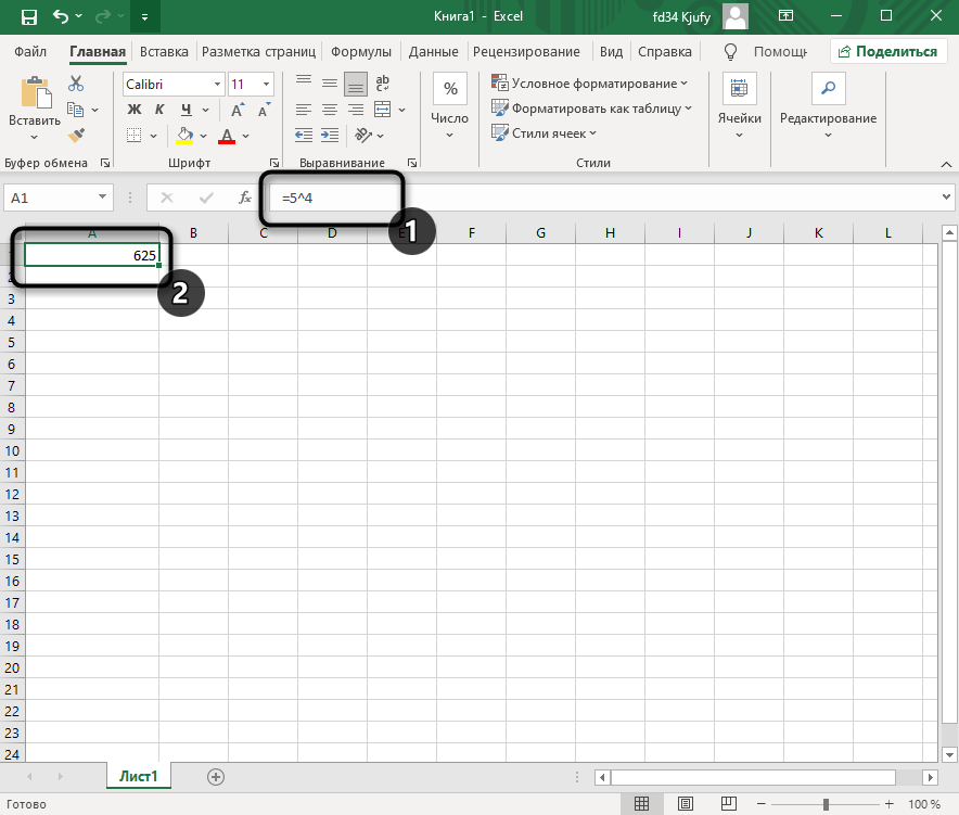 Самый простой метод возведения в степень в Excel – использование записи специального символа, обозначающего этот вид операции. Выберите необходимую ячейку, поставьте знак =, напишите первое число, затем знак ^ и вторую цифру, обозначающую степень. После нажатия клавиши Enter произойдет расчет, и в ячейке отобразится итоговое число возведения.