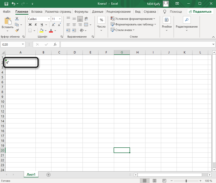 Два рассмотренных выше способа подразумевают обязательное возведение числа в степень с отображением результата. Узнать, какая степень ему присвоена, не получится без нажатия по строке для отображения функции. Не всем пользователям подходит такая методика, поскольку некоторые заинтересованы в обычном отображении числа с обозначением, показывающим степень. Для реализации подобной задачи формат ячейки необходимо перевести в текстовый, а затем произвести запись с изменением символа.