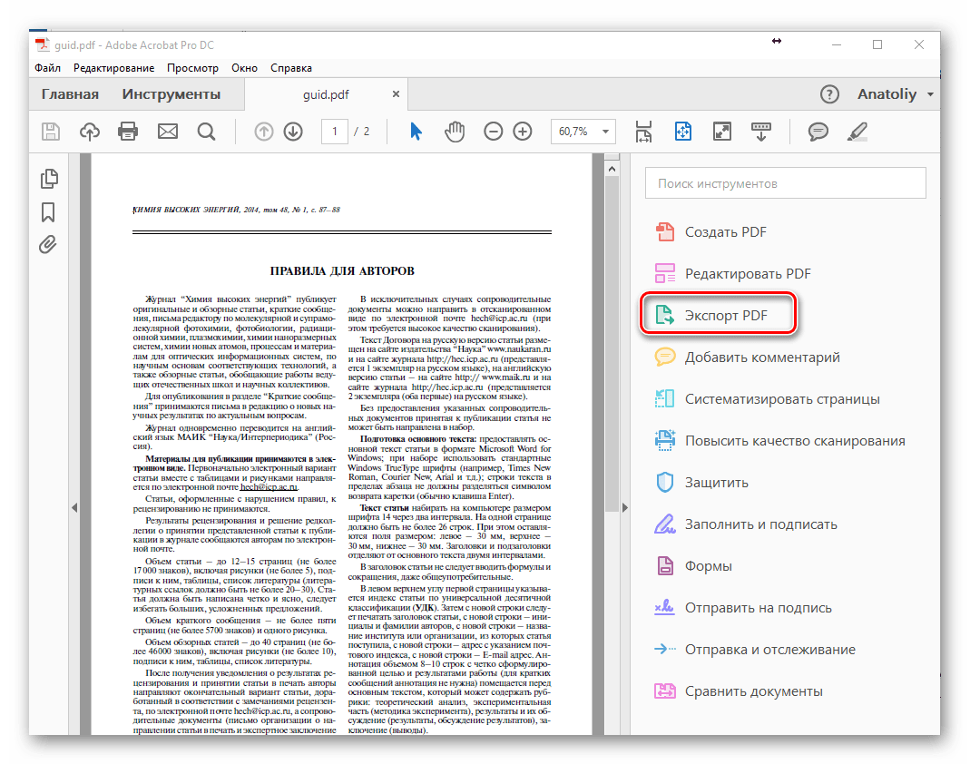 Использование Acrobat лучший способ редактирования и форматирования документа. Именно эта компания разработала формат PDF и поэтому их механизмы работы с этим форматом наиболее точные из всех существующих. Однако для использования этого метода вам потребуется платная версия Acrobat. В настоящее время Adobe предлагает бесплатную семидневную пробную версию Adobe Acrobat Document Cloud (DC), которую вы можете использовать для разовых преобразования.