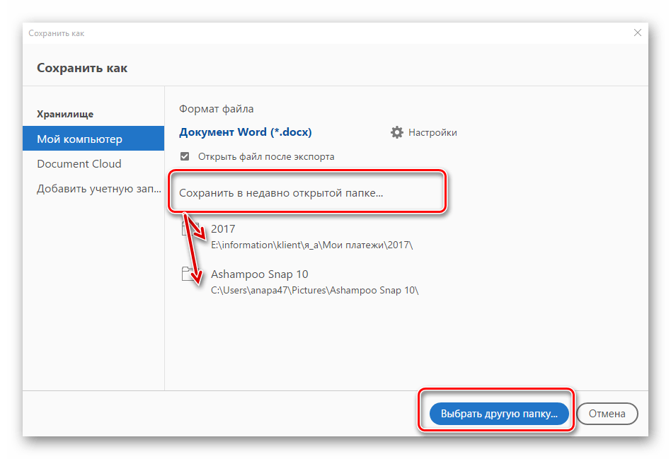 открывается окно с предложением выбора папки, в которую нужно сохранить файл.