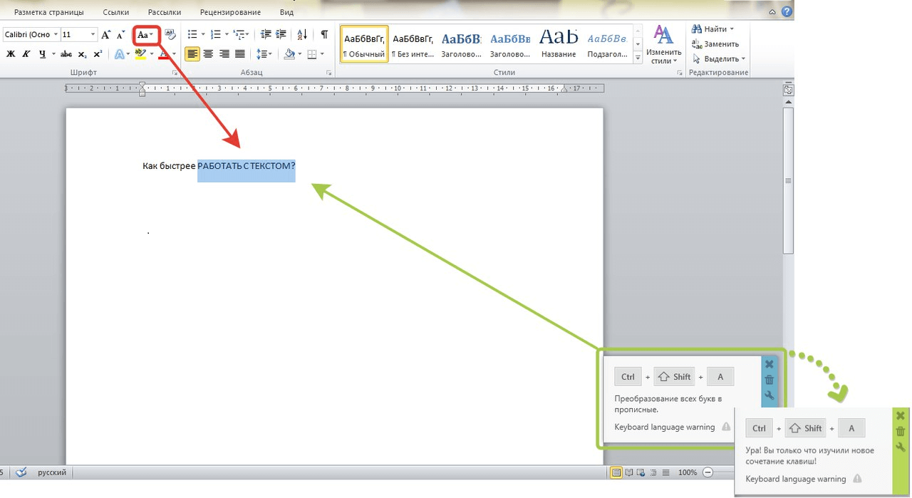 Сочетание горячих клавиш Ворд для работы с текстом