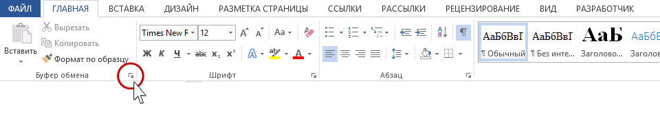 - Лента Главная → группа команд Буфер обмена → кнопка группы. Откроется окно Буфера обмена.