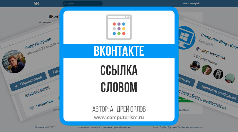 Как сделать (вставить) ссылку словом Вконтакте на человека или страницу