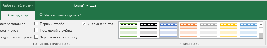 Помимо цветовой схемы, вы можете настроить таблицу в меню Конструктор таблиц:
