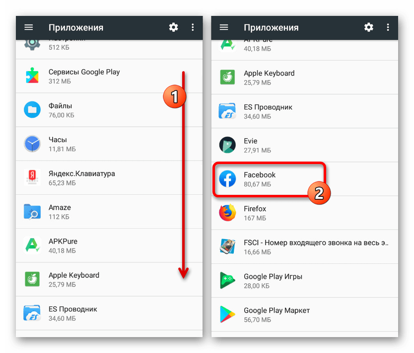 - В списке найти Facebook – это может быть один или два файла с длинными именами.;
