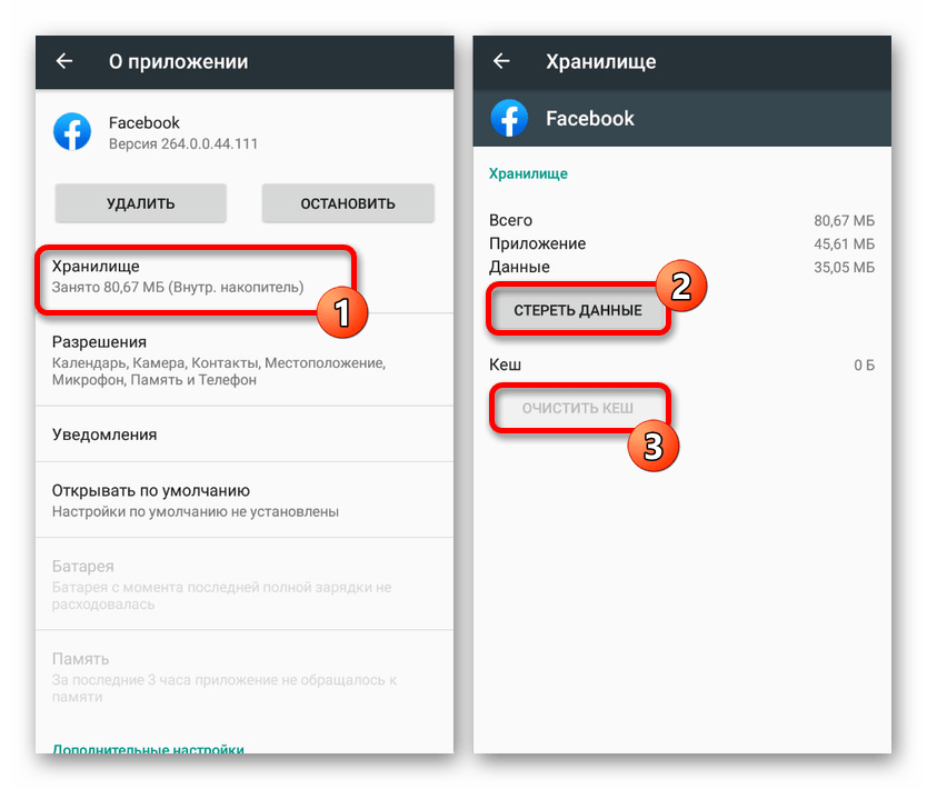 Первый универсальный способ выхода из ФБ на телефоне, одинаково актуальный для мобильной версии сайта и официального клиента, заключается в очистке данных о работе приложения, используя настройки операционной системы. Вместе с тем он может стать решением возможных проблем с ПО, делающих невозможным выход стандартными средствами.