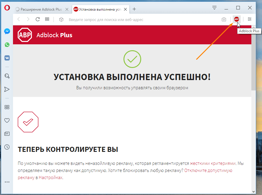 Для установки расширения «Adblock Plus» выполним следующие шаги: