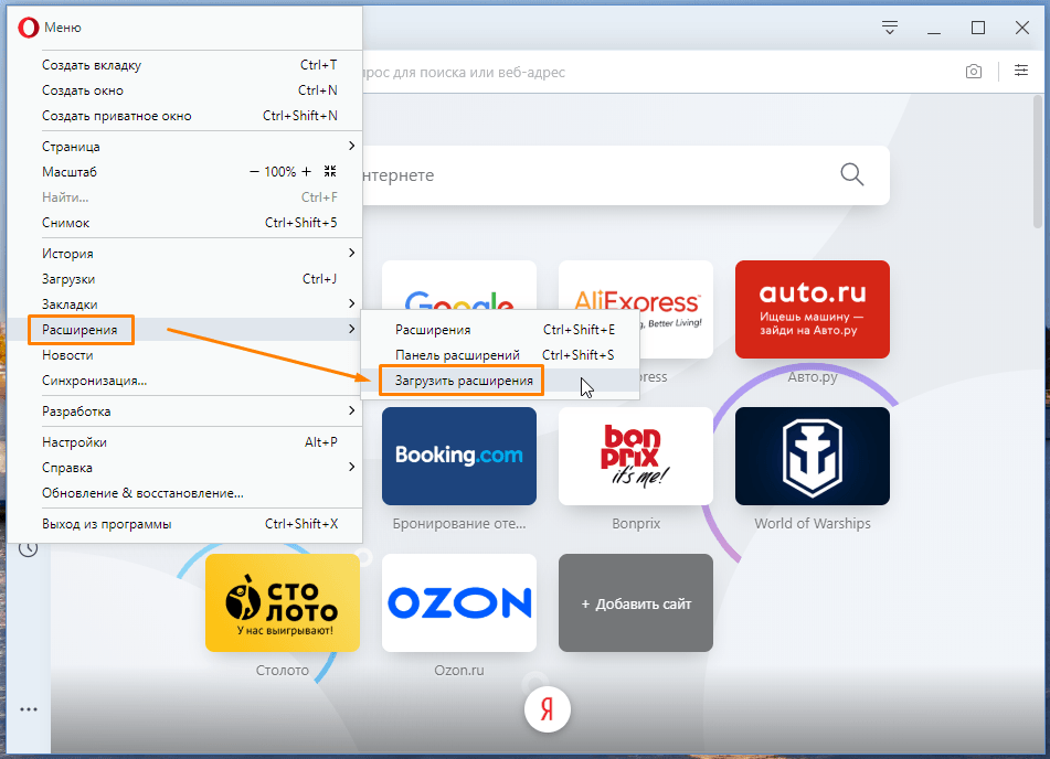 Добавляем расширение в Opera