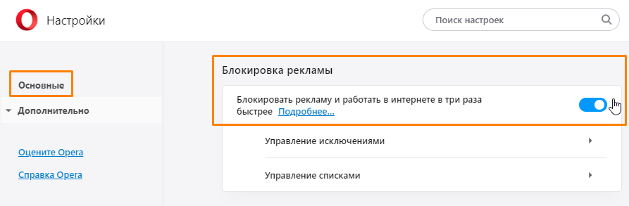 Как заблокировать рекламу в настройках браузера Opera