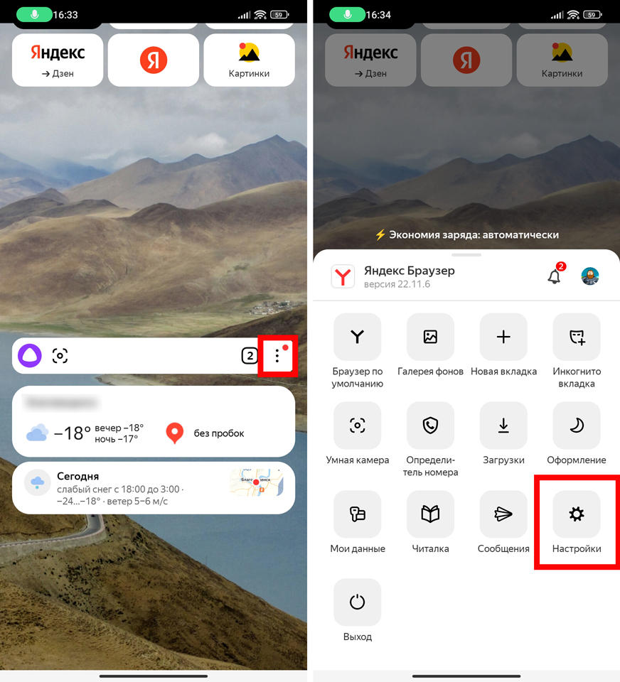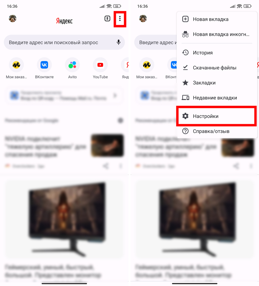 - Через меню перейдите в «Настройки» веб-обозревателя.