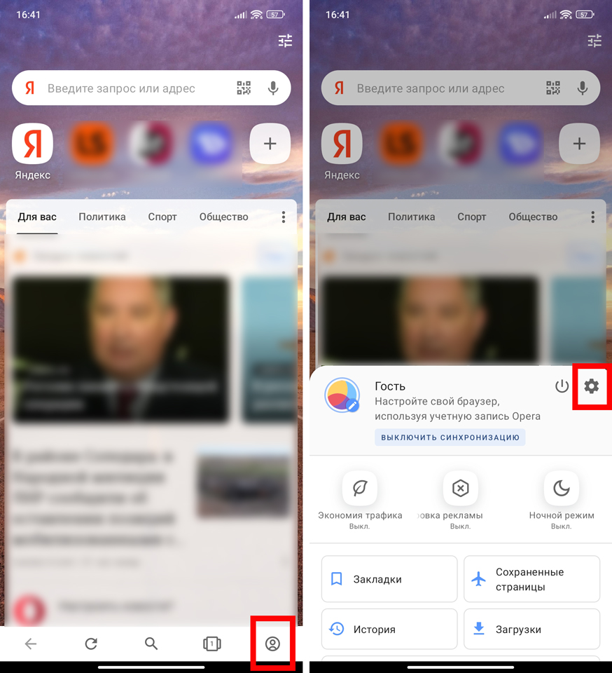 Давайте посмотрим, как заблокировать всплывающие окна в этом браузере. Для этого открываем меню, нажав по значку аватара в правом нижнем углу экрана. Теперь, как вы уже могли догадаться, нам нужно тапнуть по кнопке с шестерней.