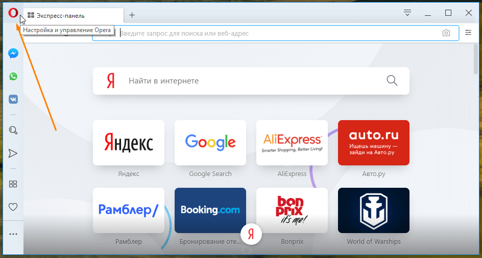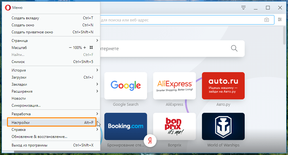 Открываем настройки браузера Opera