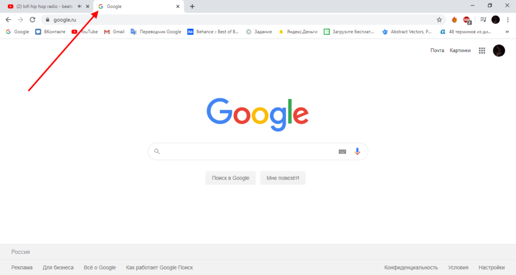 - Клик по кнопке , которая находится правее всех открытых вкладок.