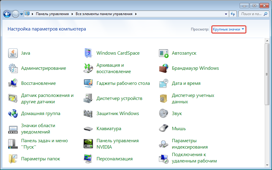 - Изменить параметр просмотра на крупные значки справа в верхнем углу.