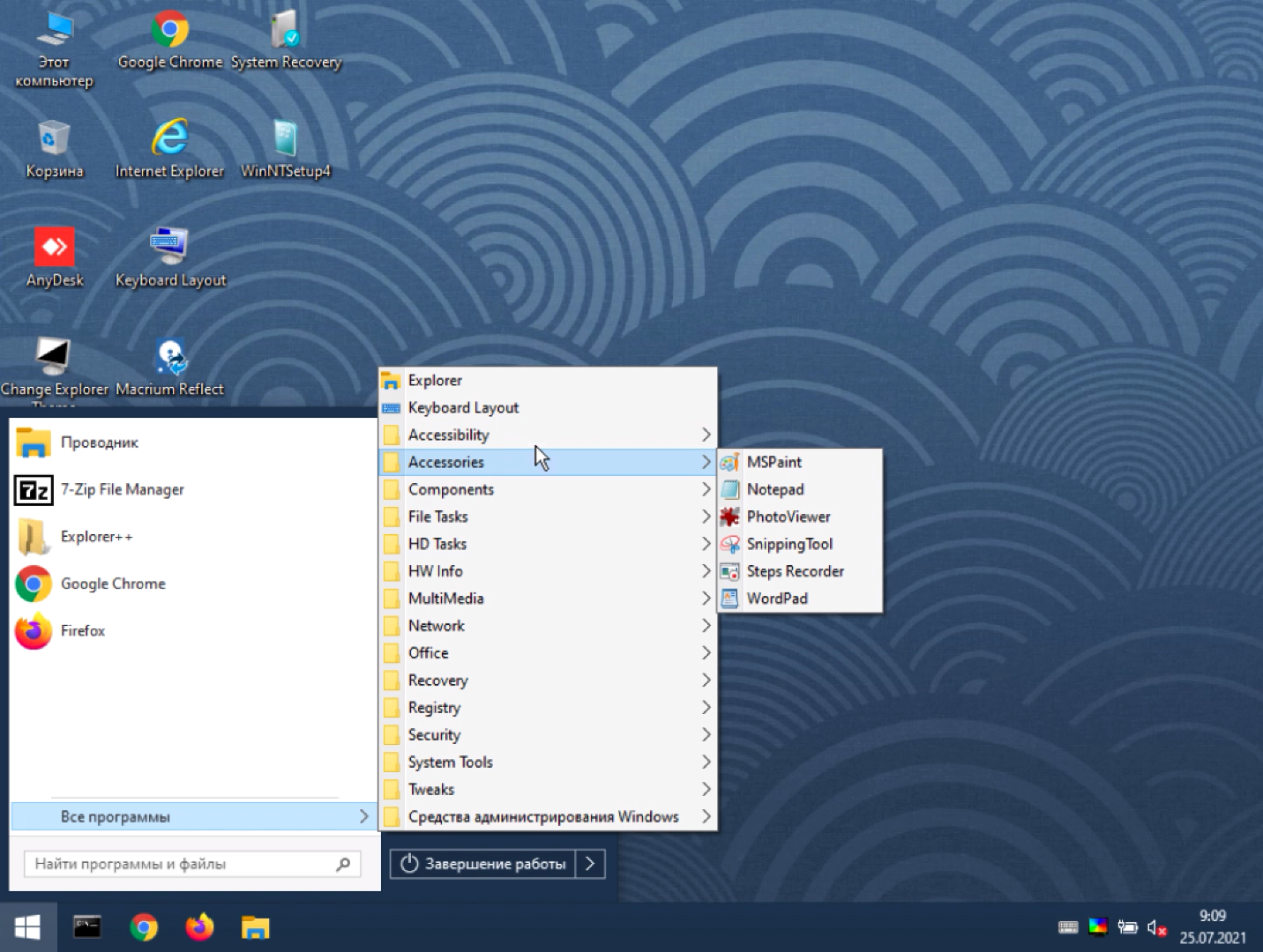 Все выбранные нами инструменты есть в системе. Некоторые из них я вывел на рабочий стол, некоторые разместил на панели задач. Доступ к другим инструментам находится в меню «Пуск.
