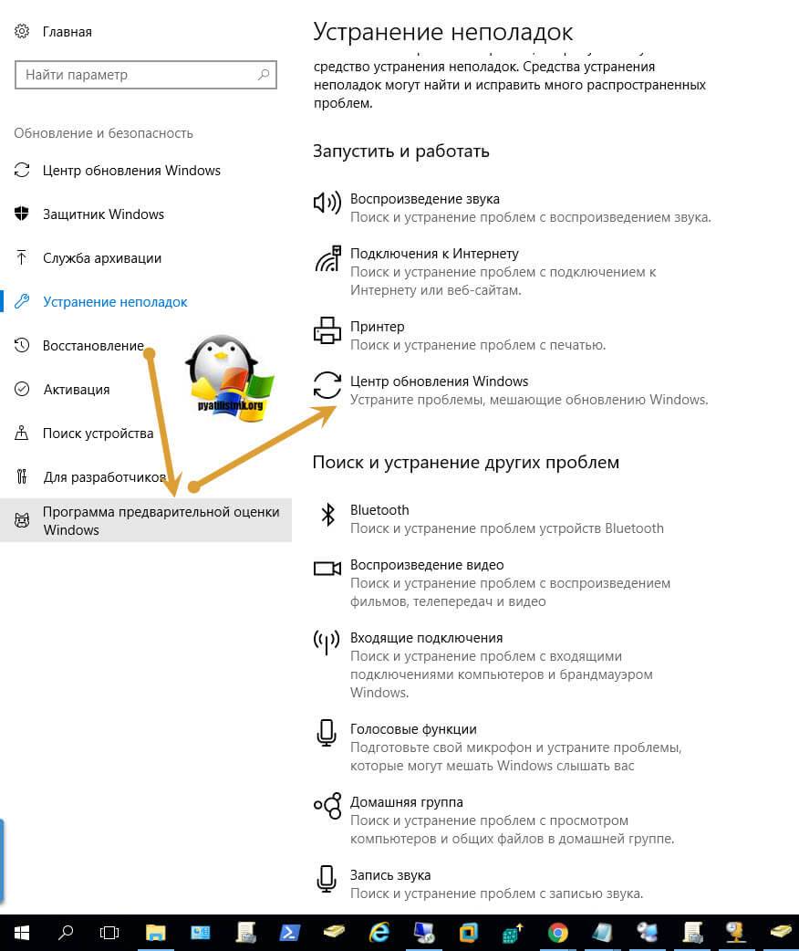 Нажмите, чтобы развернуть Центр обновления Windows, и нажмите «Запустить средство устранения неполадок».