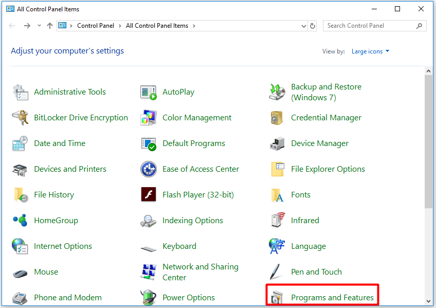 Step 1: Open Control Panel and find Programs and Features on this page.