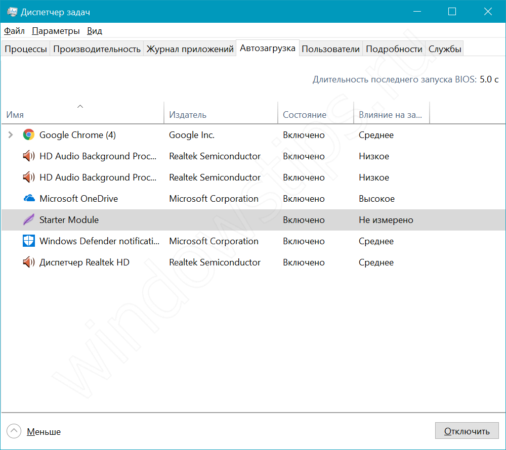 Как включить или отключить программы, запускаемые при запуске, через диспетчер задач
