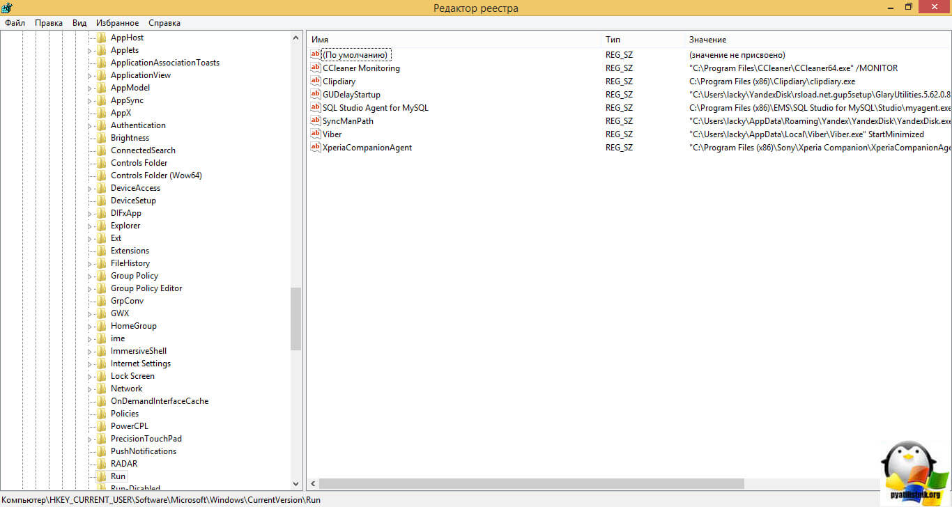 4. Редактор реестра (команда regedit в окошке «Win+R»). Расположение: KEY_CURRENT_USER\ SOFTWARE\ Microsoft\ Windows\ CurrentVersion\ Run. Каждый из параметров отвечает за своё приложение.