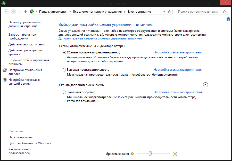 Сбалансированный – предлагает полную производительность, когда та нужна и экономию энергии, когда компьютер простаивает. Для пользователей он реально оптимален.