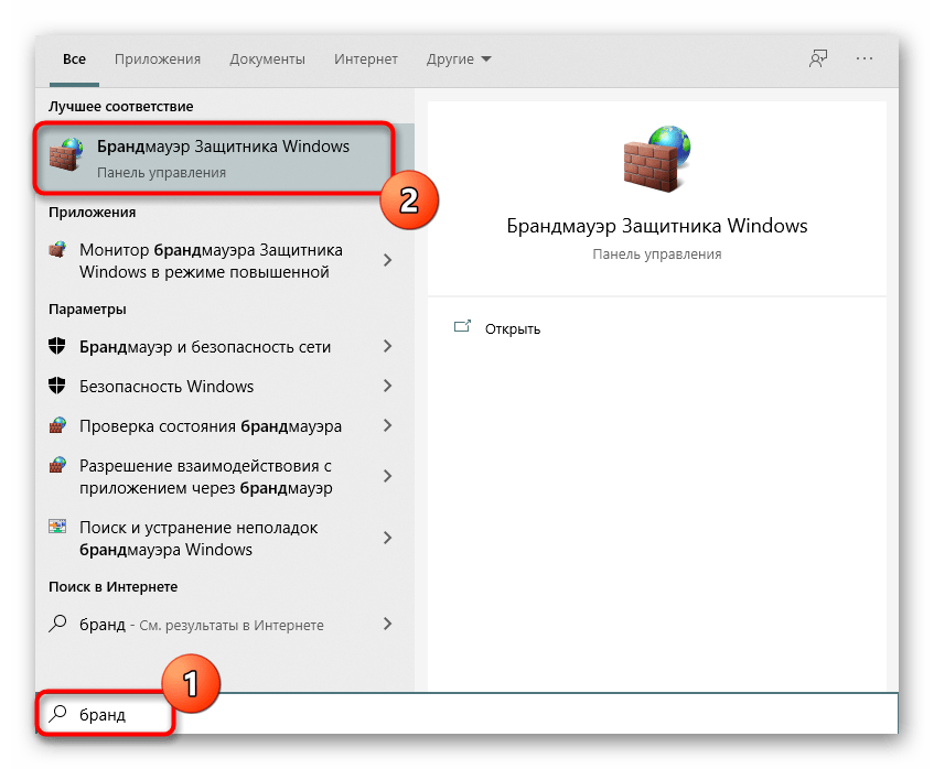 - Откройте «Пуск» и перейдите оттуда в меню брандмауэра.