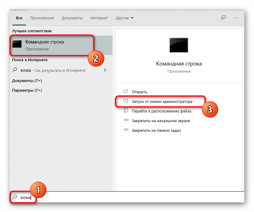 - Кликните правой кнопкой мыши CMD и запустите от имени администратора.