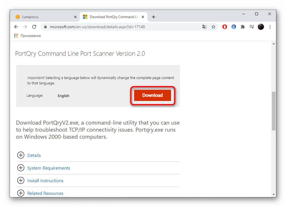 - Загрузка PortQry осуществляется с официального сайта компании Microsoft.