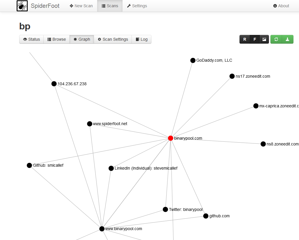 SpiderFoot. Еще один полезный инструмент разведки, тоже имеющий открытый код для Виндовс и Линакс. Написан на базе языка Python, имеет очень удобную конфигурацию, отлично работает почти на любой платформе, встраивается в графические интерфейсы.