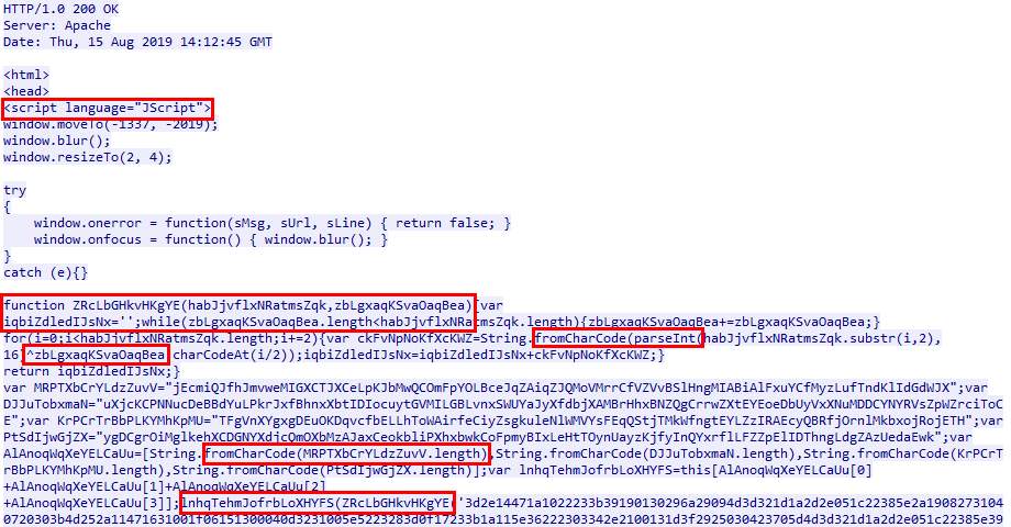 Рисунок 15. Код JSRat, передаваемый в ответе веб-сервера