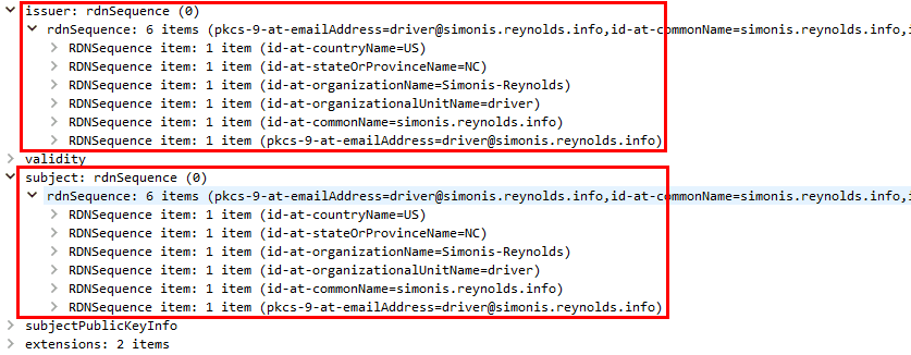 Рисунок 21. Содержимое полей DN Issuer и DN Subject