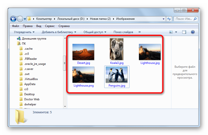 Так выглядит, когда эскизы отключены и файл Thumbs.db не функционирует