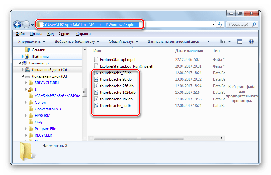 следует подставить конкретное имя пользователя системы. В данной директории находятся файлы группы thumbcache_xxxx.db. Они и являются аналогами объектов Thumbs.db, которые в ранних версиях ОС размещались во всех папках, где имелись картинки.