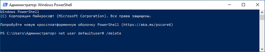 Таким образом, учетная запись defaultuser0 будет полностью удалена.