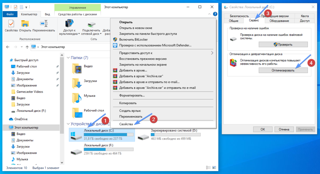 ПКМ по локальному диску – Свойства – Сервис – Оптимизировать
