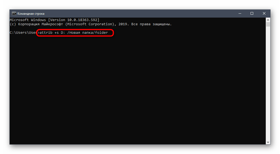 Введите команду и через пробел напишите полный путь к конечной папке, которую хотите настроить. Для применения команды нажмите на Enter.