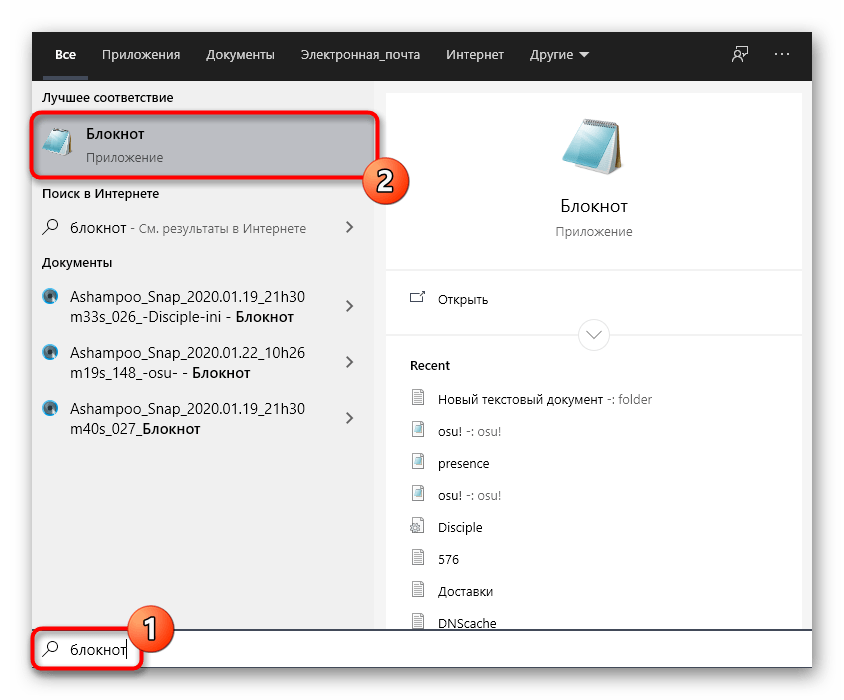 После этого запустите стандартное приложение «Блокнот». Оно нам понадобится для создания конфигурационного файла.
