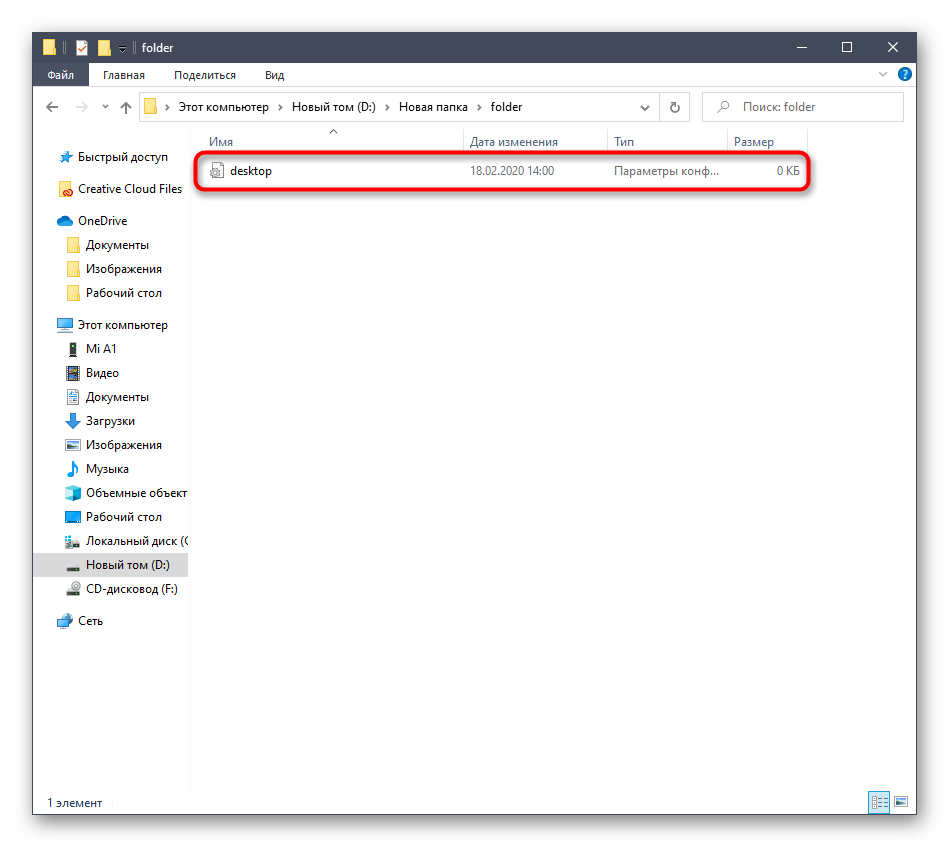 Выше вы узнали о предназначении рассматриваемого файла, а также о методах его отображения или скрытия. Сейчас предлагаем углубиться в тему взаимодействия с Desktop.ini. Это будет полезно тем пользователям, кто желает настроить папки в соответствии со своими требованиями, но пока не знает, как именно это осуществляется. Для начала создайте необходимую директорию и запомните полный путь к ней, а затем следуйте инструкции.