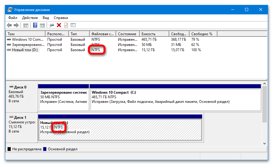 Возможно, файловая система в «Управлении дисками» будет носить формат RAW, а не NTFS или FAT32 – это последствие сбоя. О том, как решить такую проблему, подробно рассказано в материале ниже.