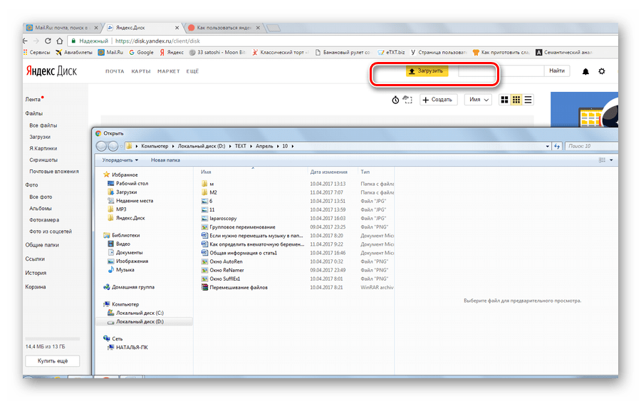 Рассмотрим, как работать с Яндекс Диском. Этот ресурс позволяет бесплатно хранить на нем информацию до 10 Гб.